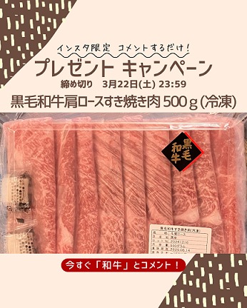 25年3月黒毛和牛すき焼き肉プレゼントキャンペーン
