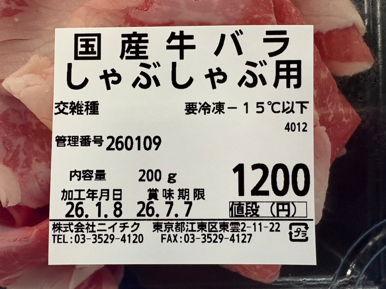 国産牛バラ肉を極薄切りスライスした商品で