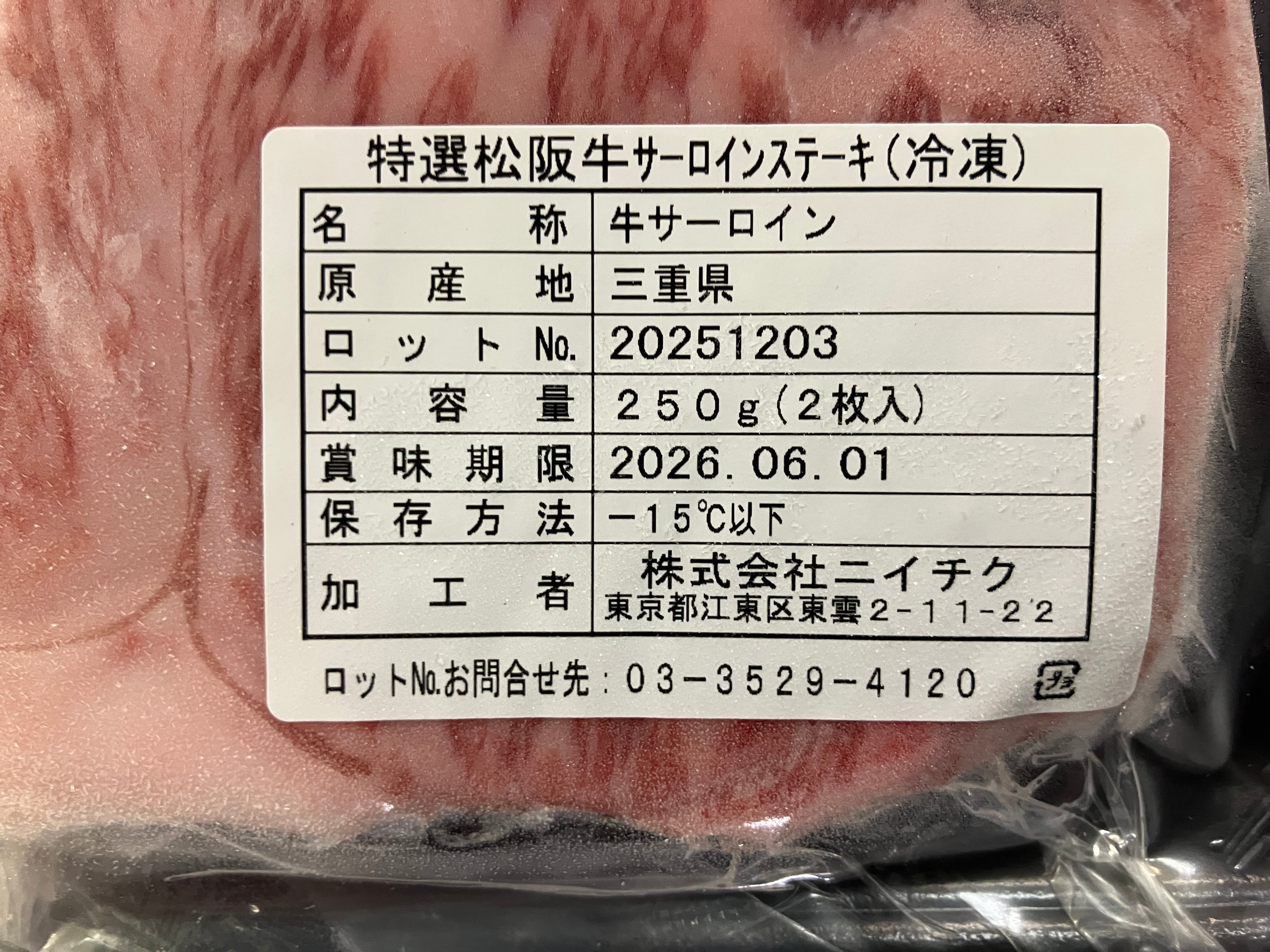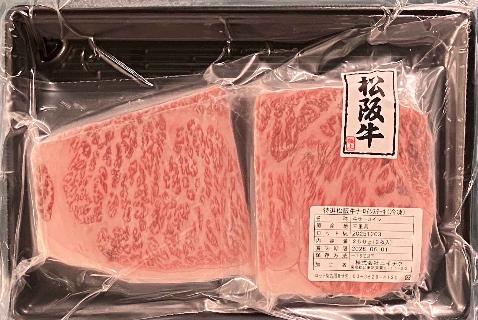 世界的に有名な和牛の1つ、松阪牛のサーロインステーキです。