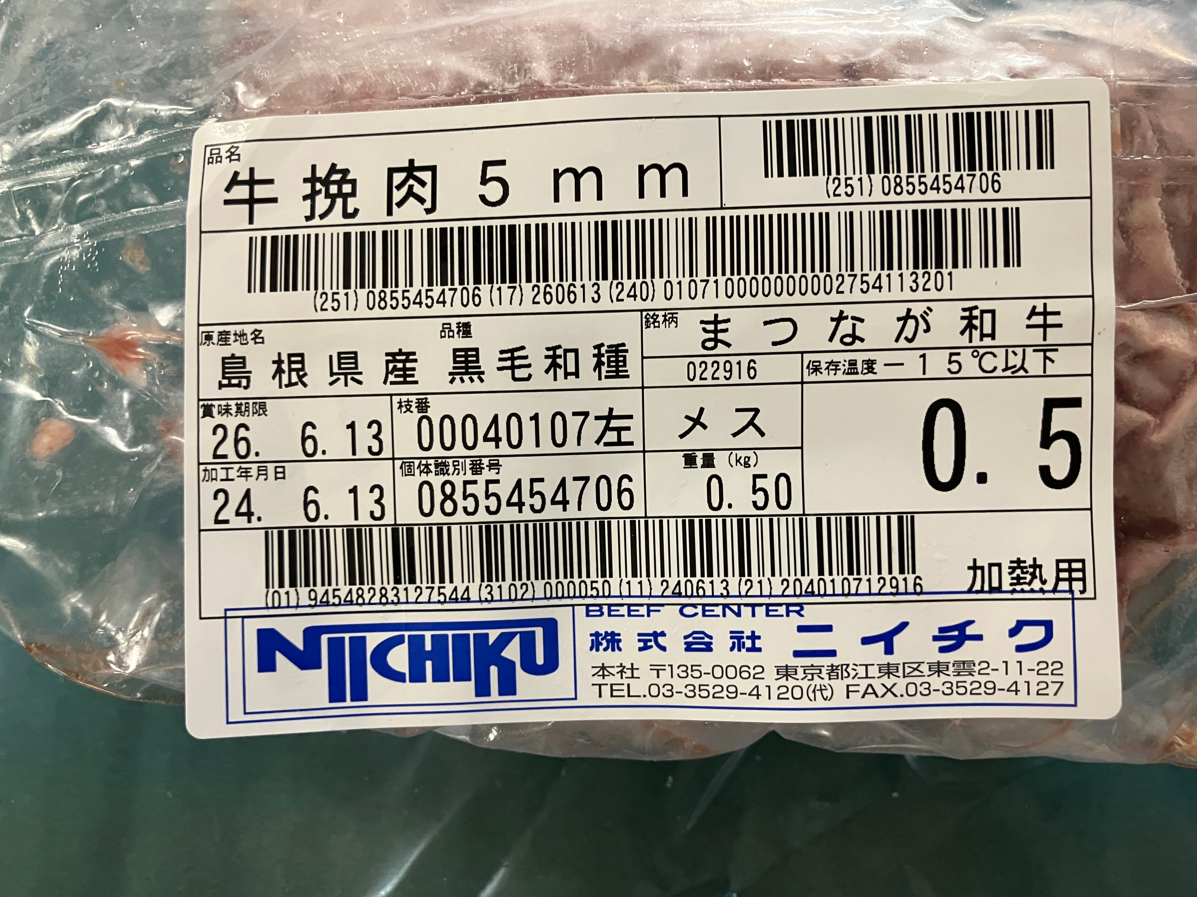 こちらの製法は和牛肉を5㎜にて挽き真空パックし、アルコール液で短時間凍結しています。