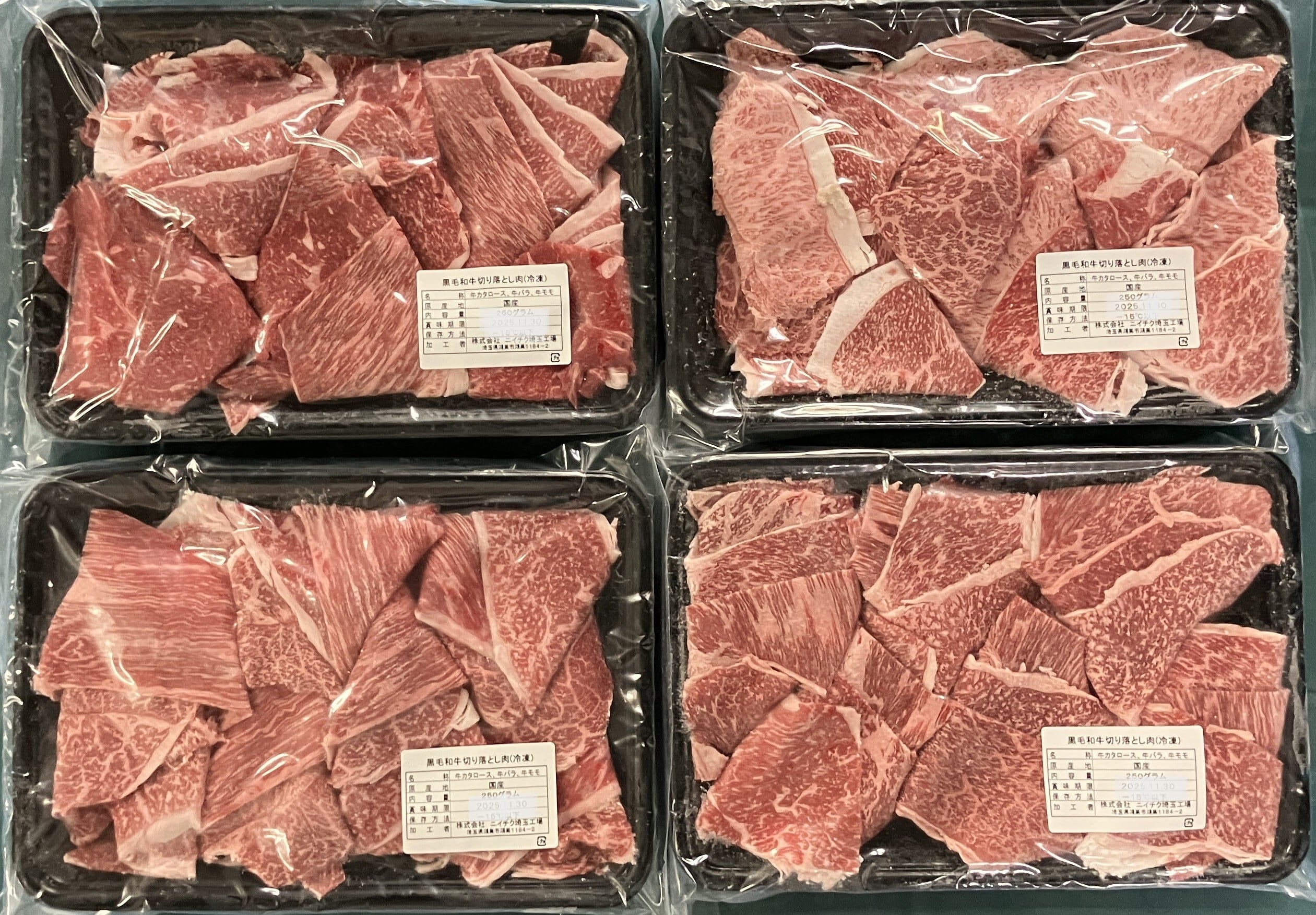 【20%OFF】【お買得】黒毛和牛切り落とし肉250g×4P/セット(冷凍)