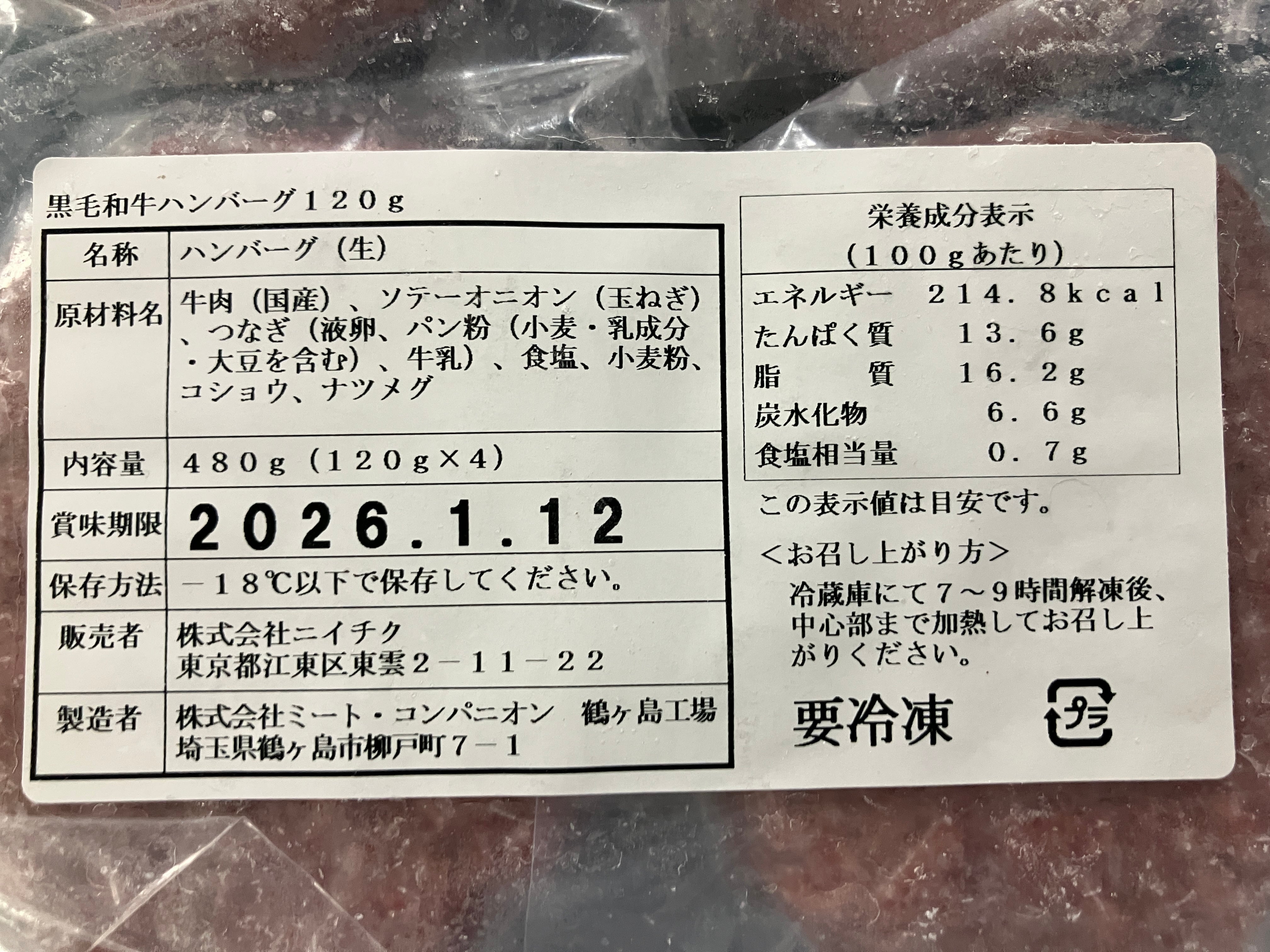 ➃黒毛和牛ハンバーグ120g×4 :2パック