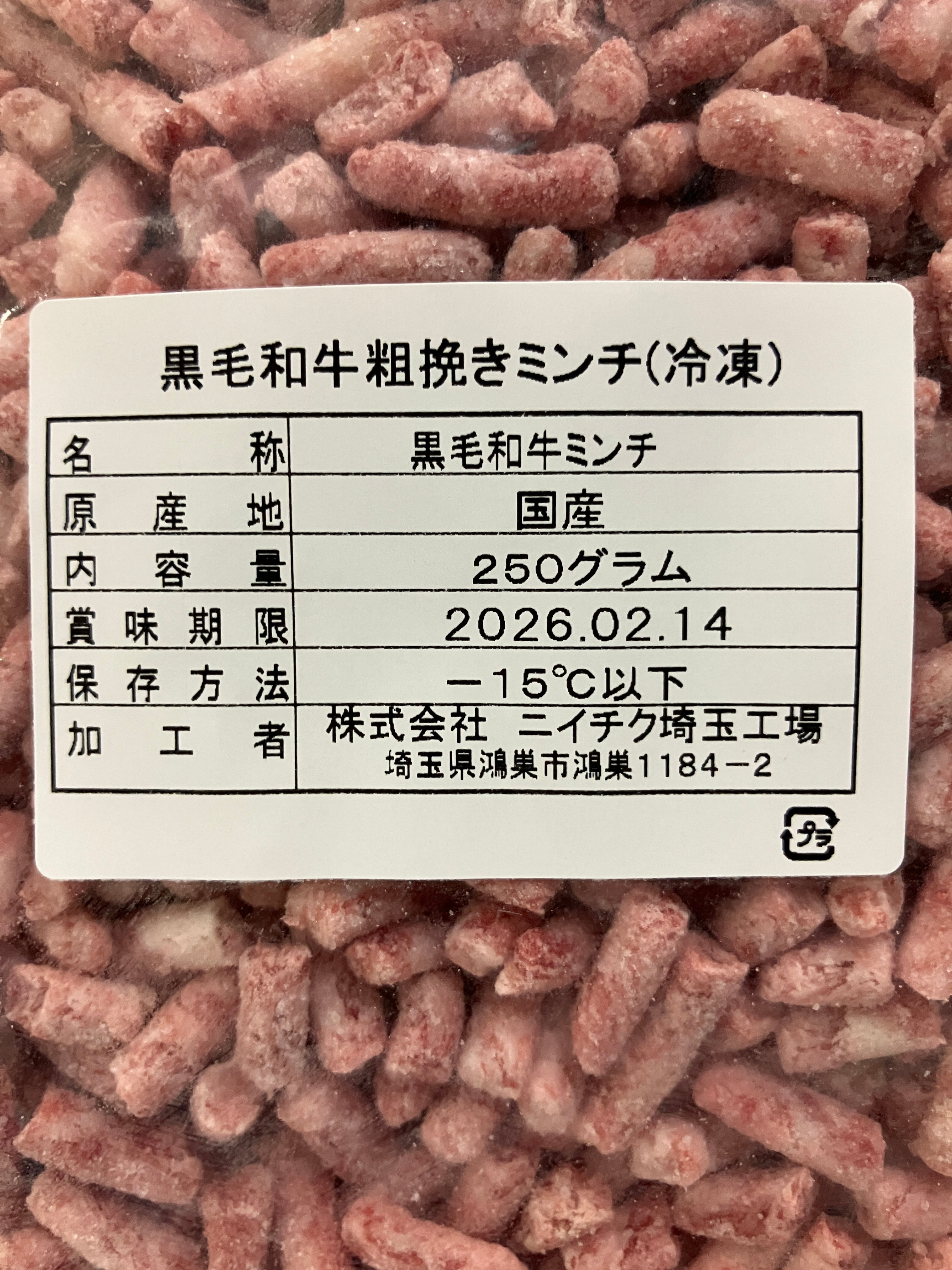 ➂黒毛和牛粗挽きミンチ250g :4パック