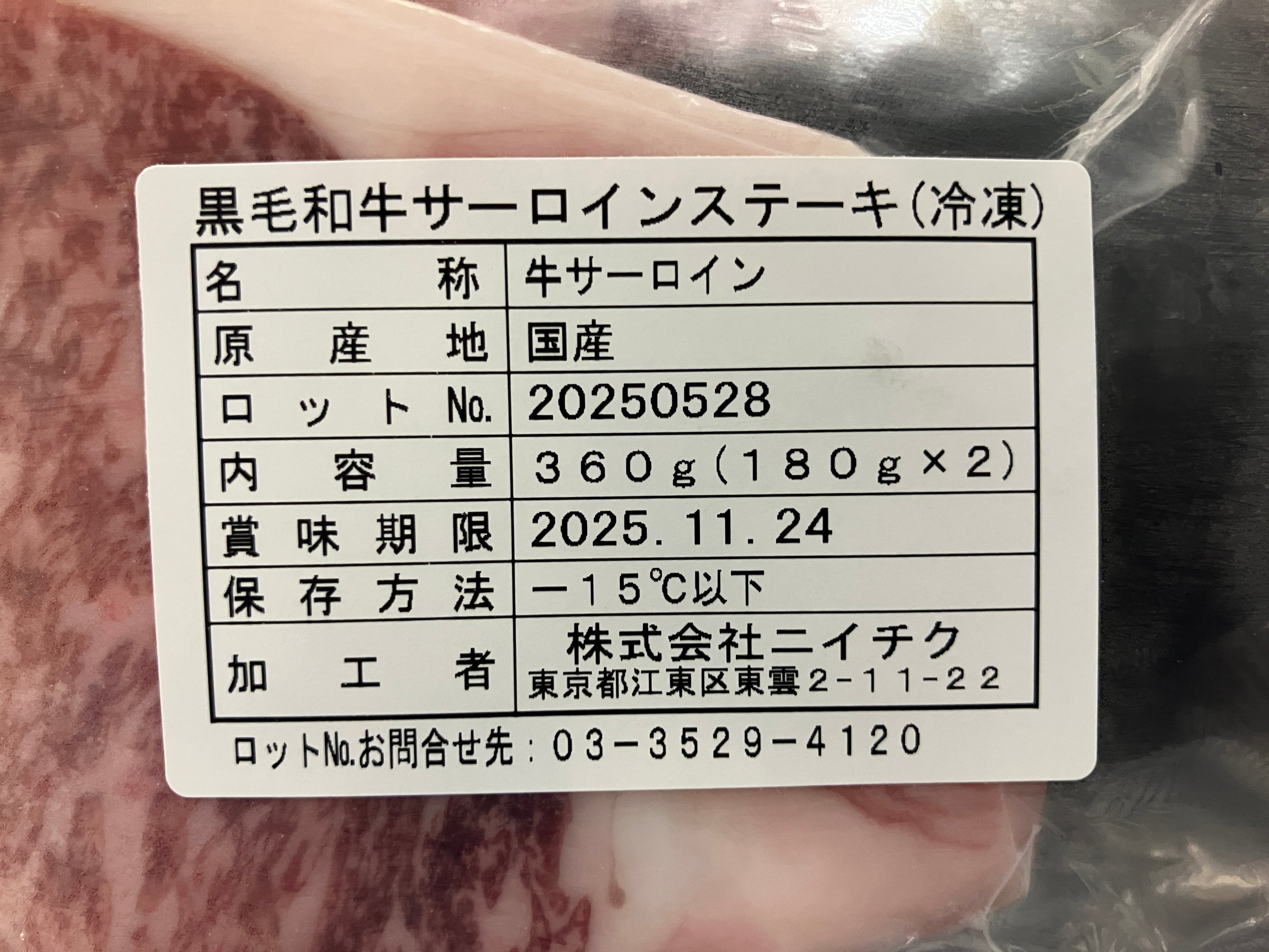➀黒毛和牛サーロインステーキ180g×2:2パック
