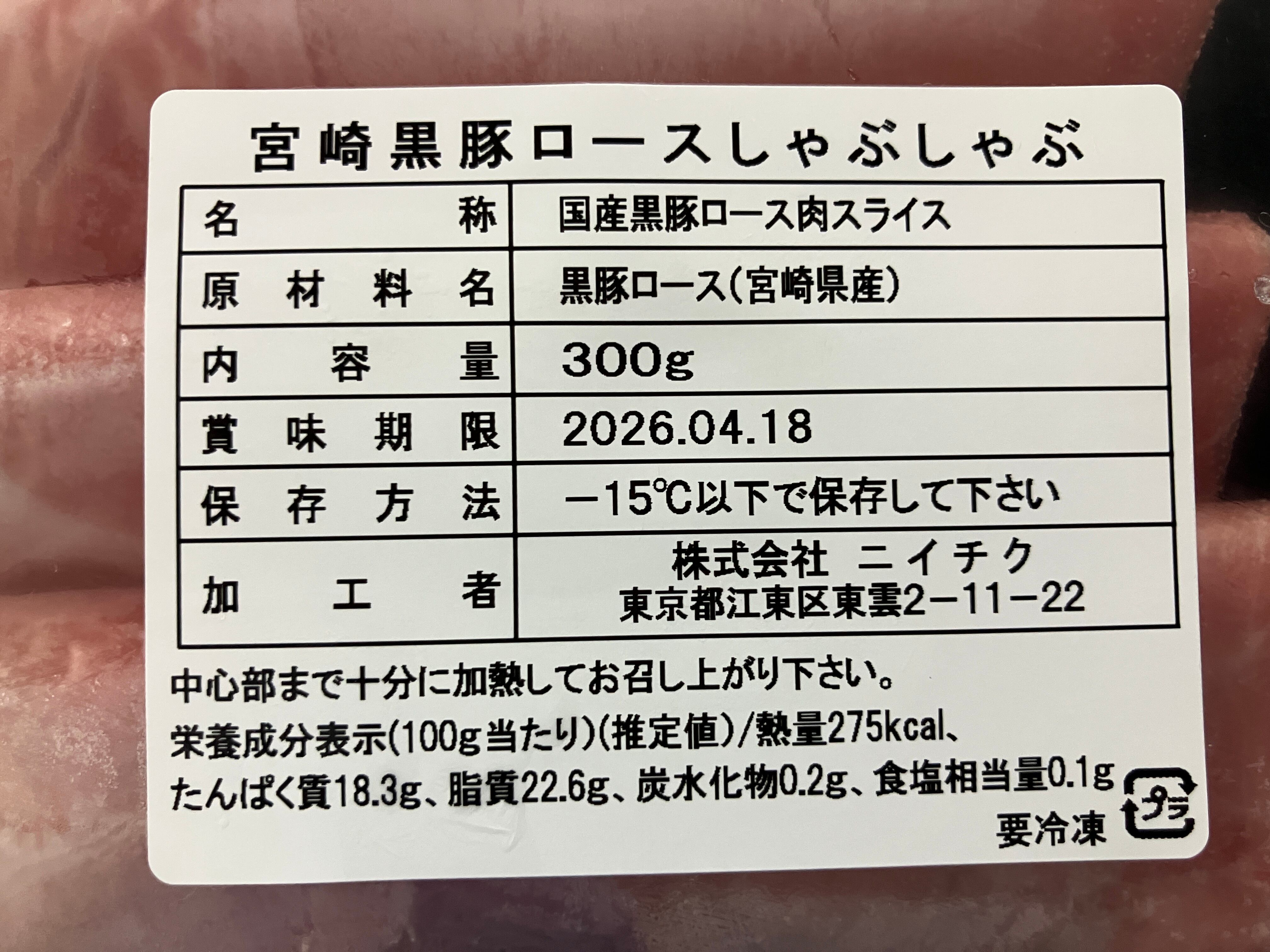 宮崎県産の黒豚ロースをしゃぶしゃぶ用にスライス