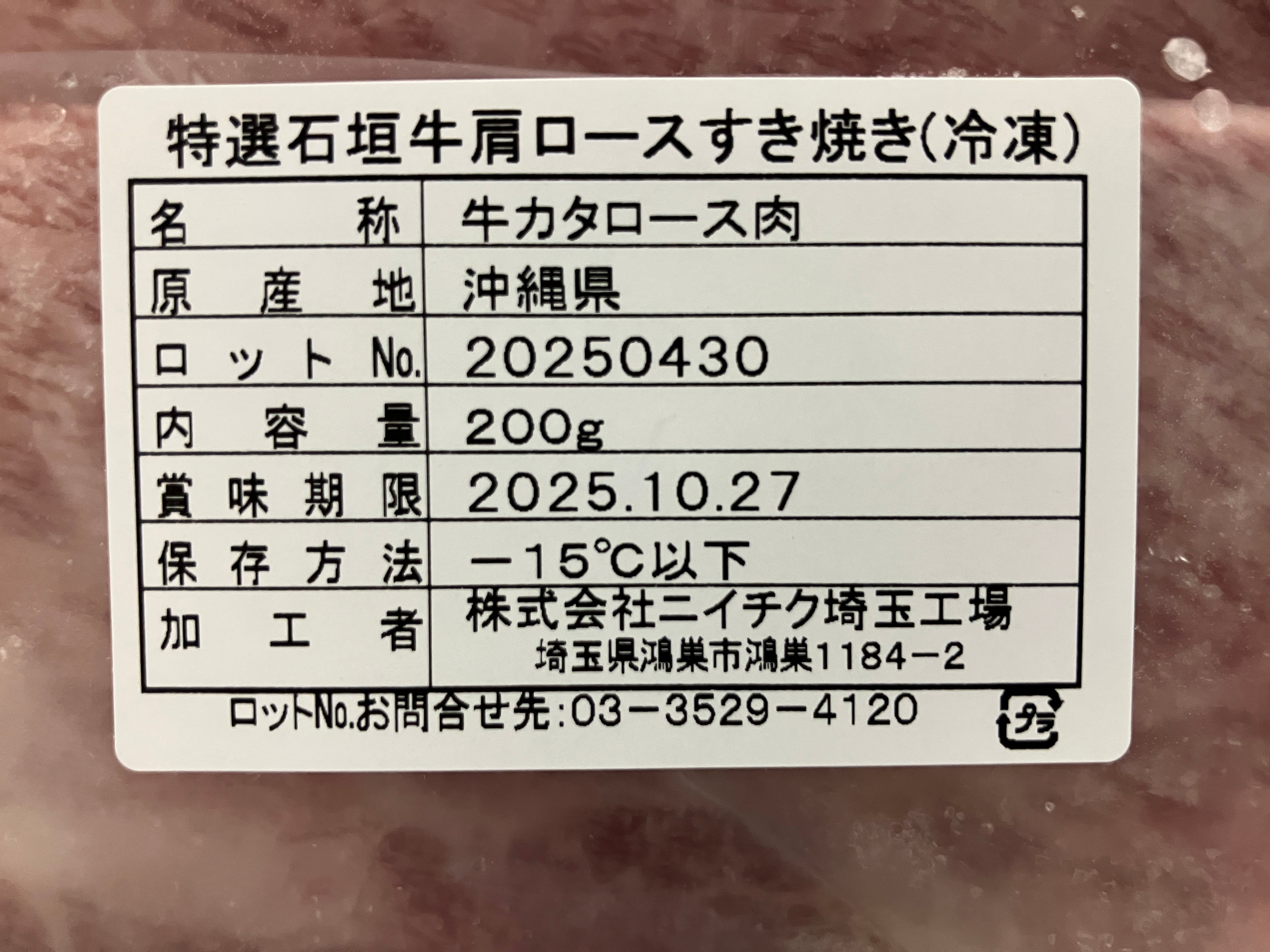 【30%OFF】特選 石垣牛肩ローススライス180g(冷凍)