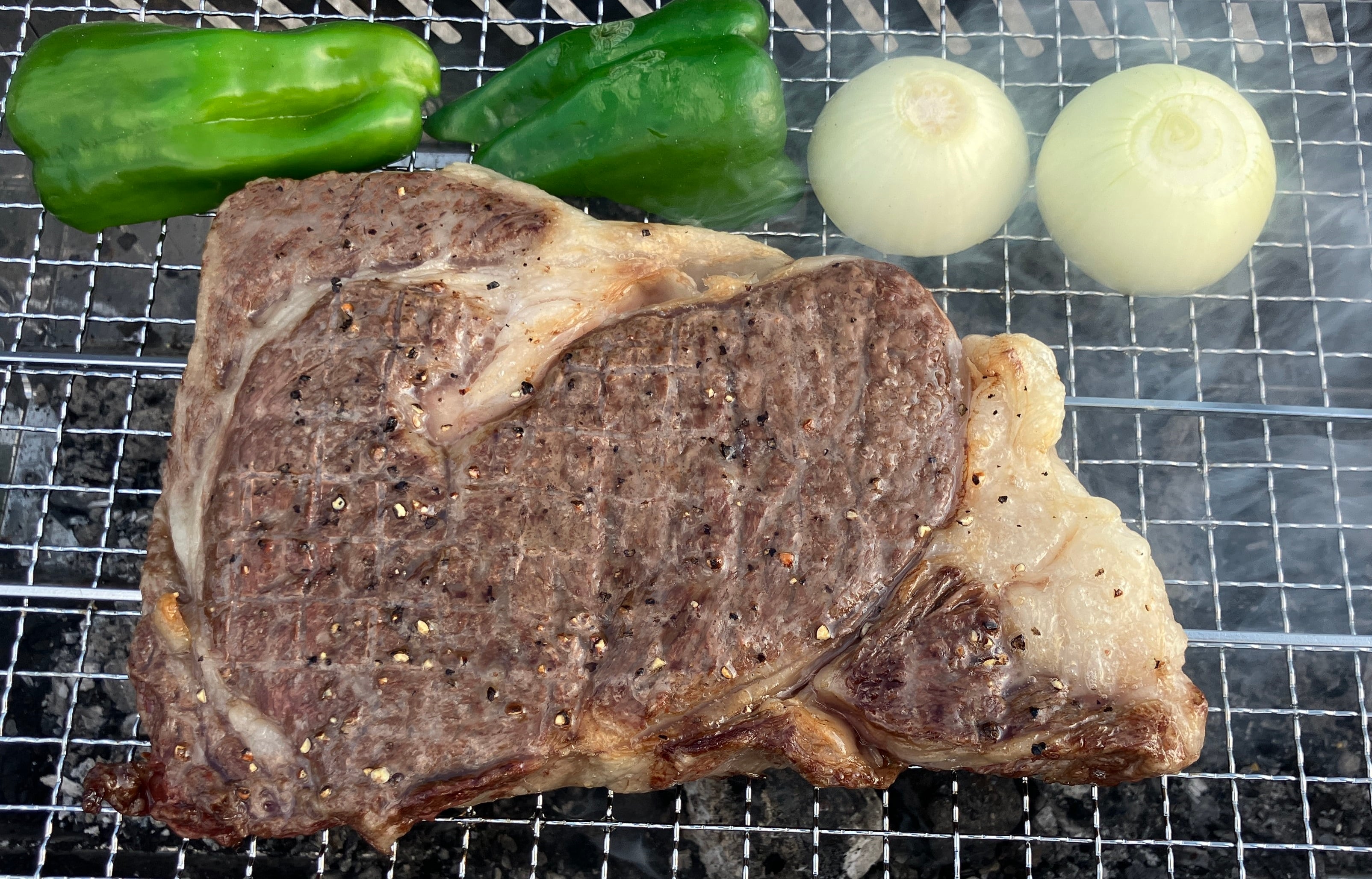炭火で厚切り黒毛和牛ステーキを焼くのは