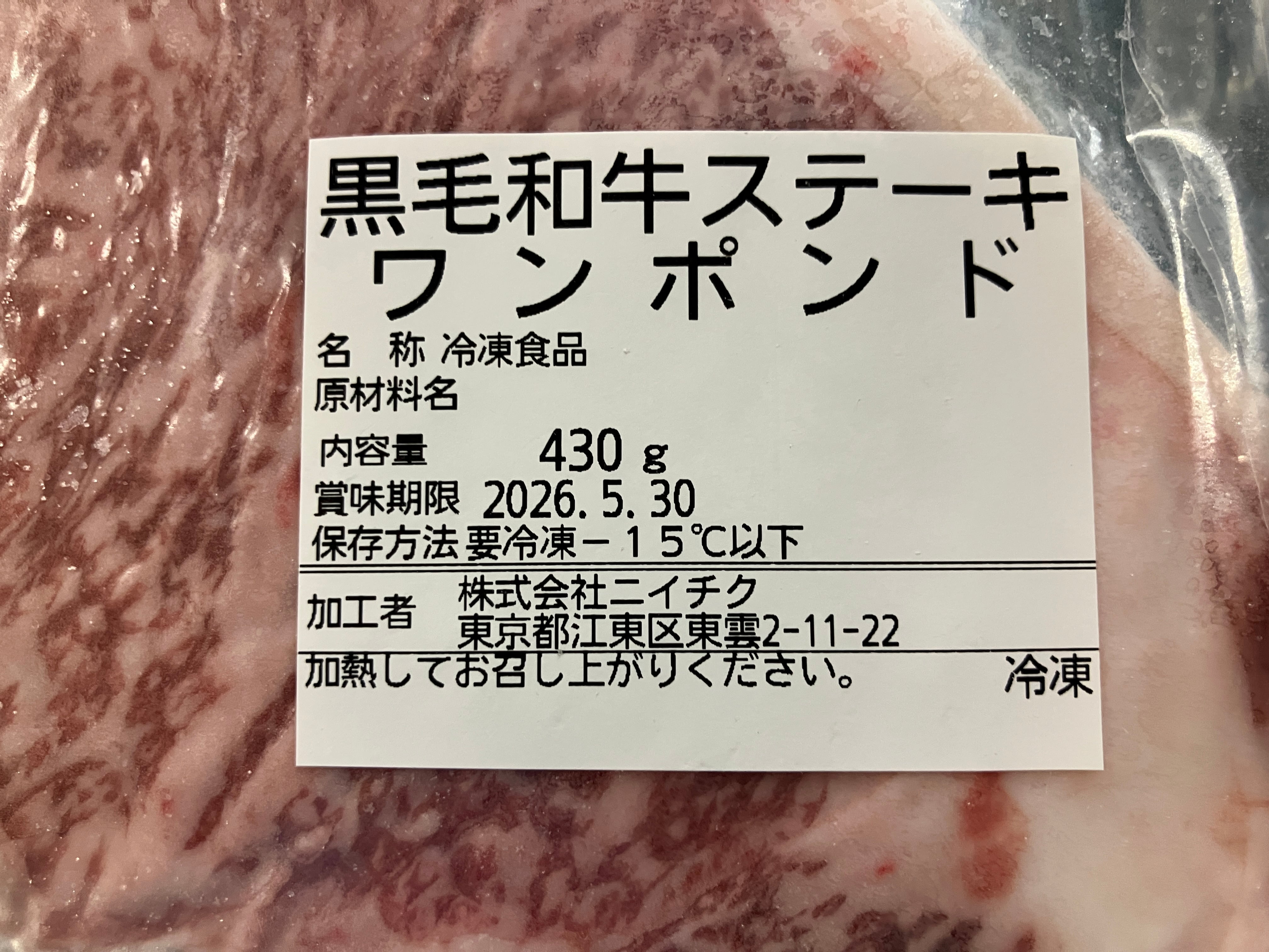 黒毛和牛サーロインを1ポンド(約430gUP基準)とした