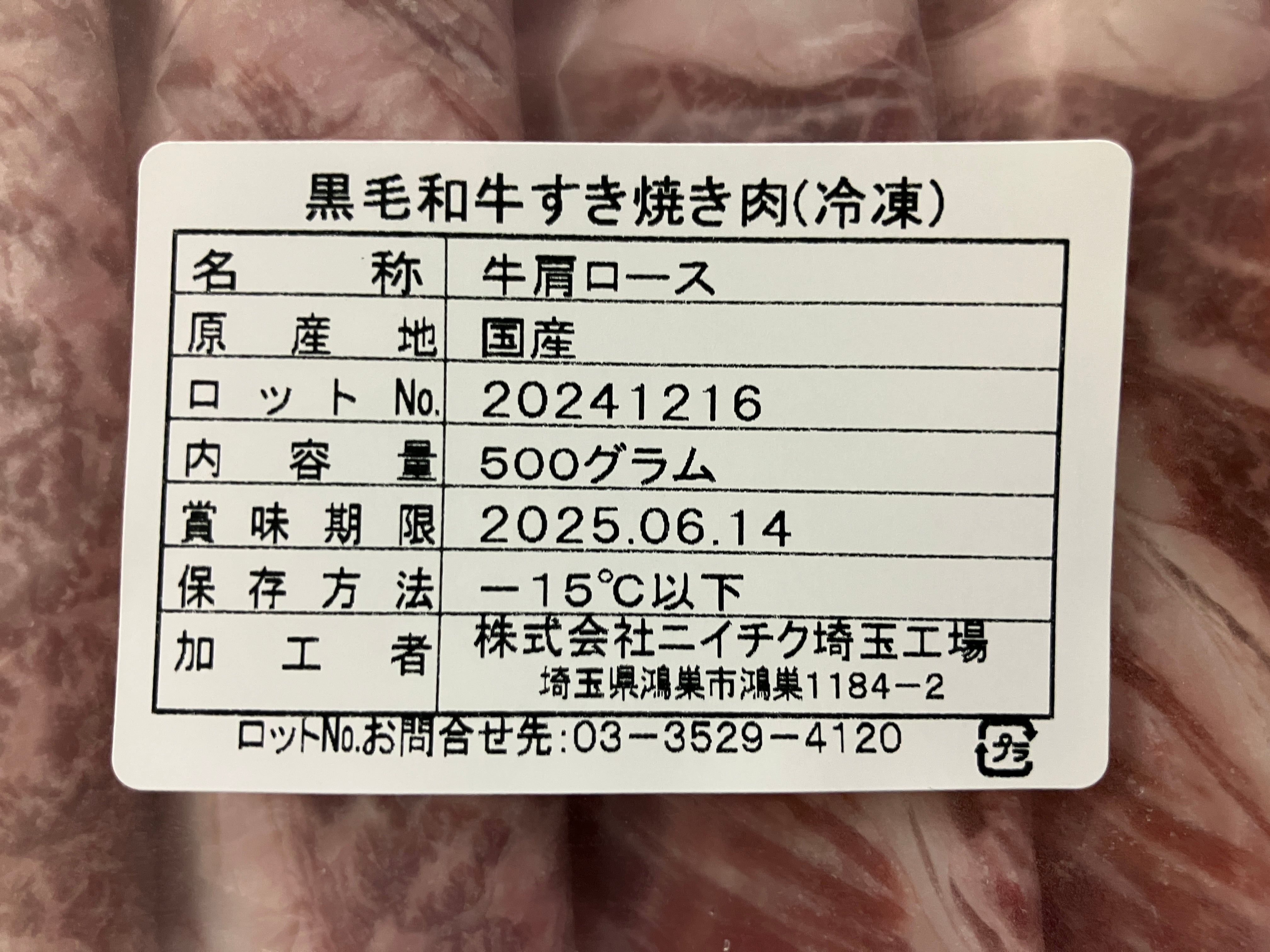 商品名 :黒毛和牛肩ロースすき焼き肉500g〈冷凍〉