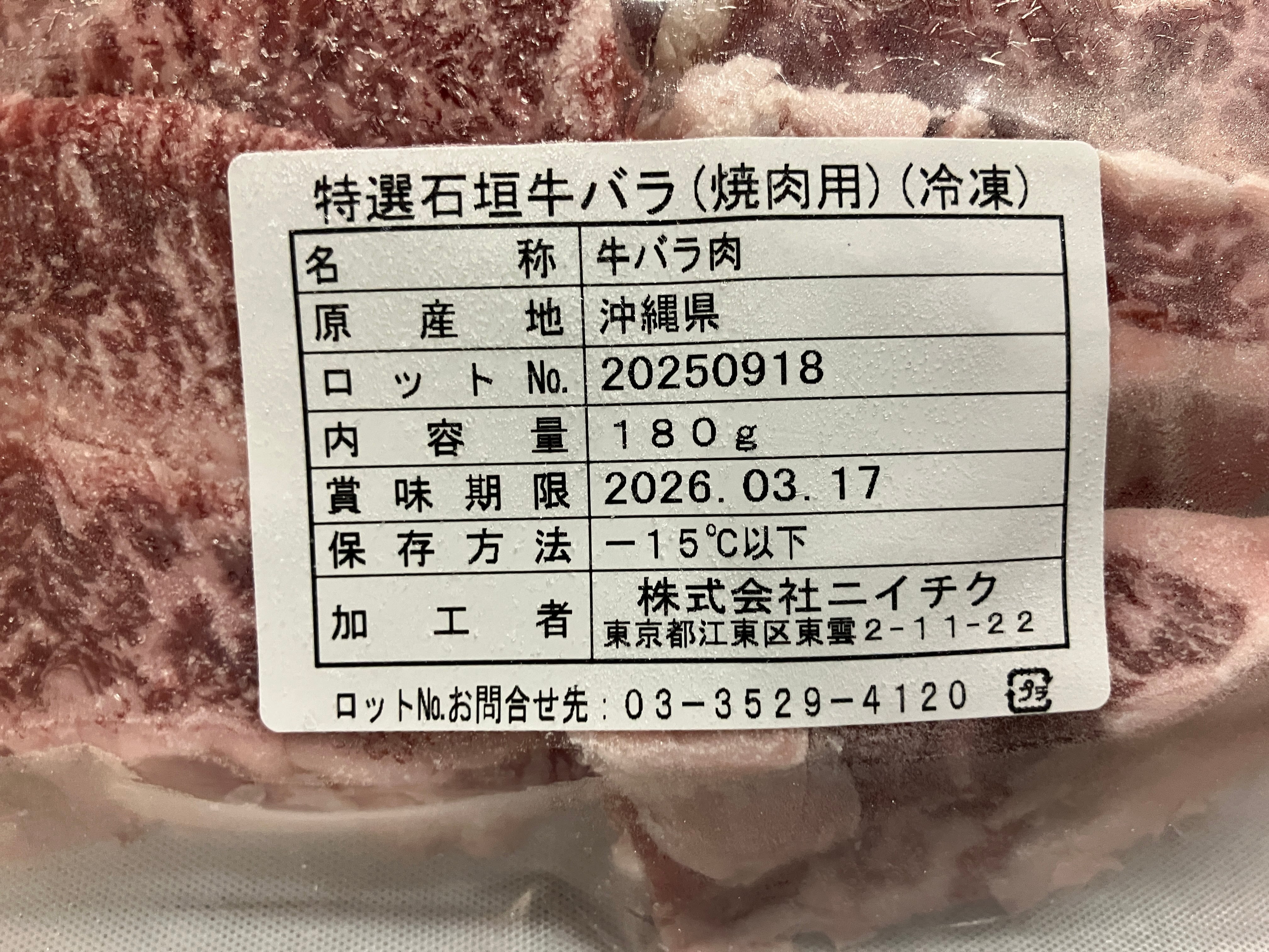 商品名 :石垣牛焼肉用バラ肉250g〈冷凍〉