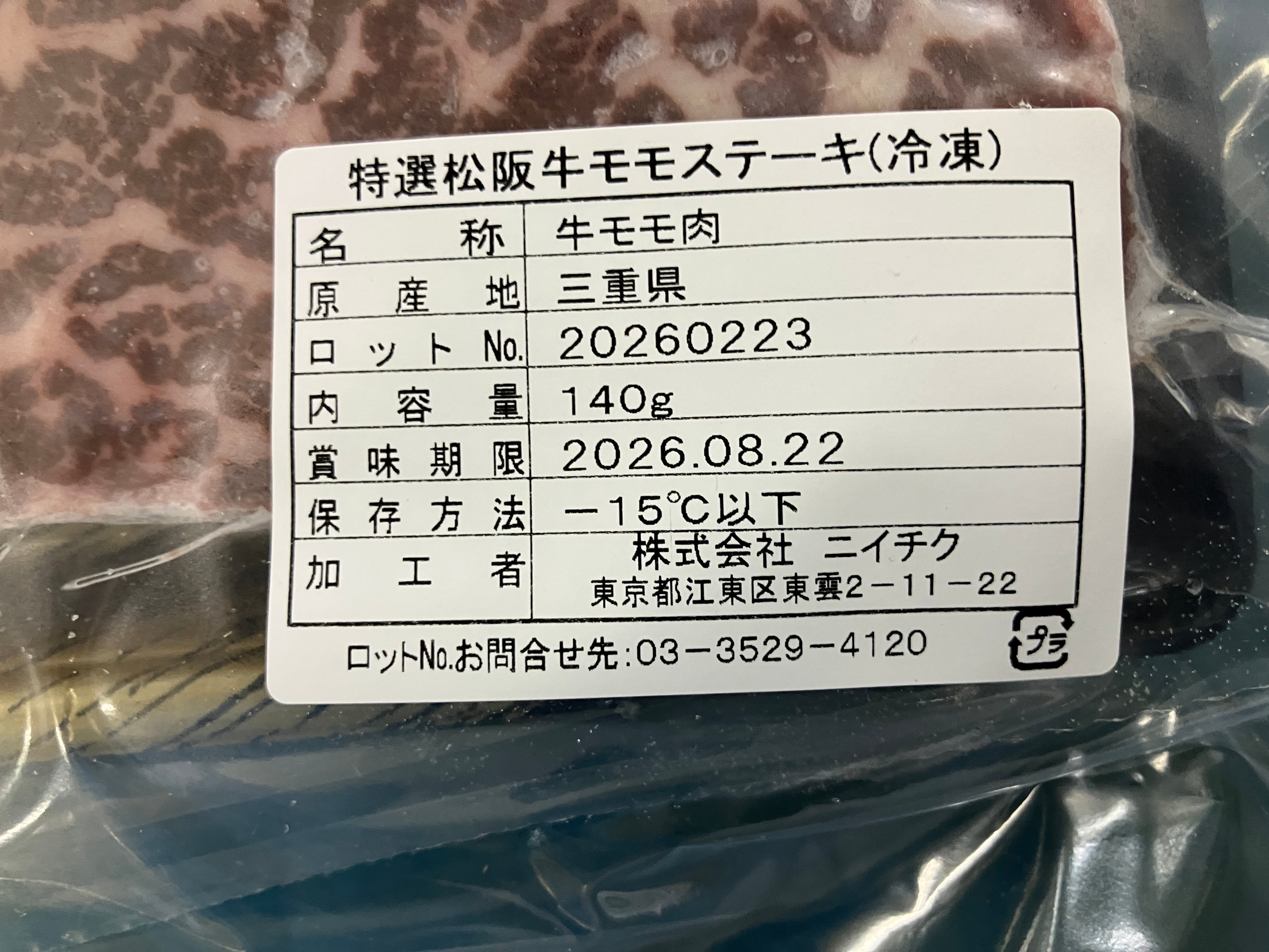 商品名 :松阪牛モモステーキ140g/1枚〈冷凍〉