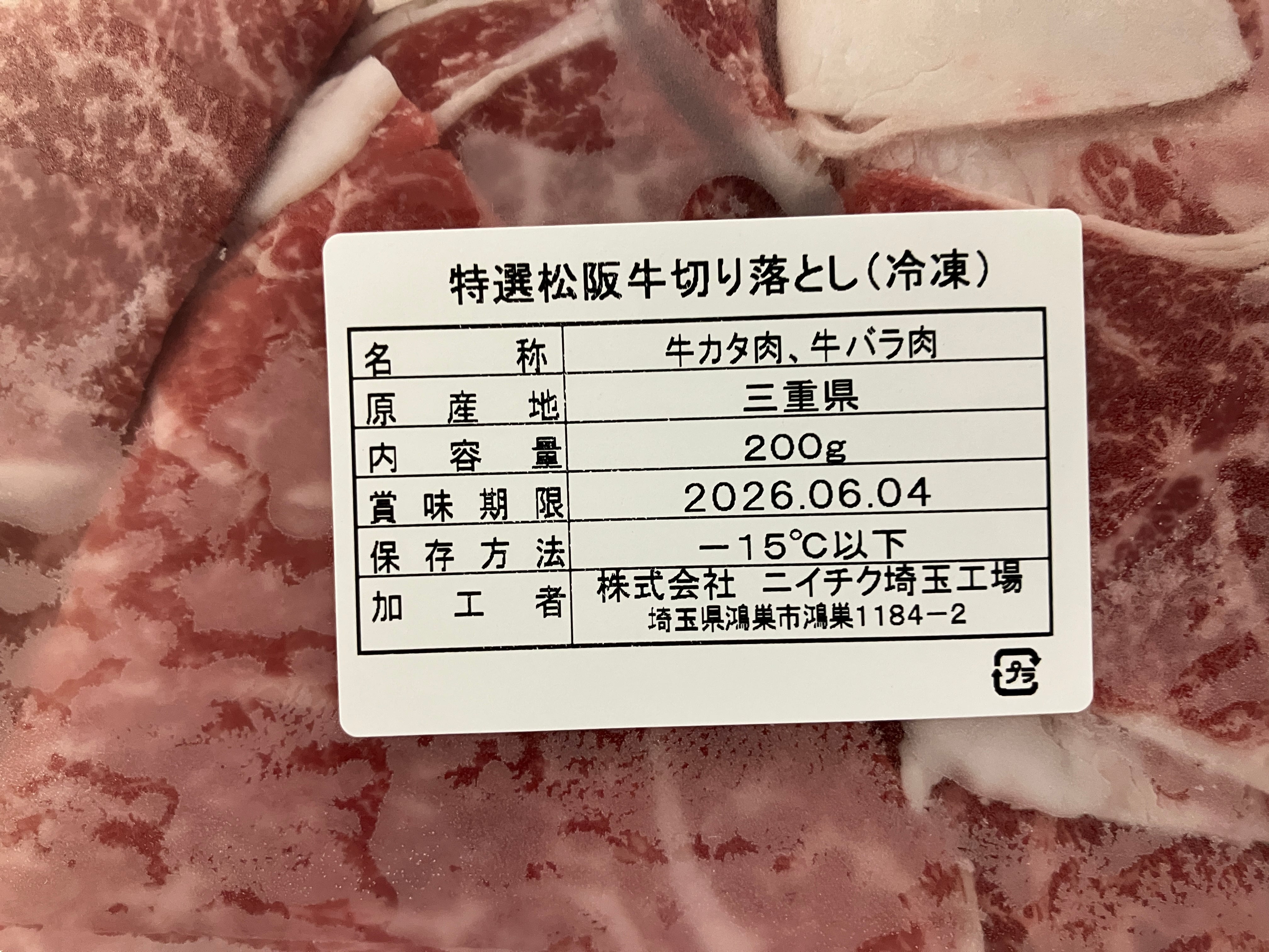 松阪牛切り落とし200g〈冷凍〉