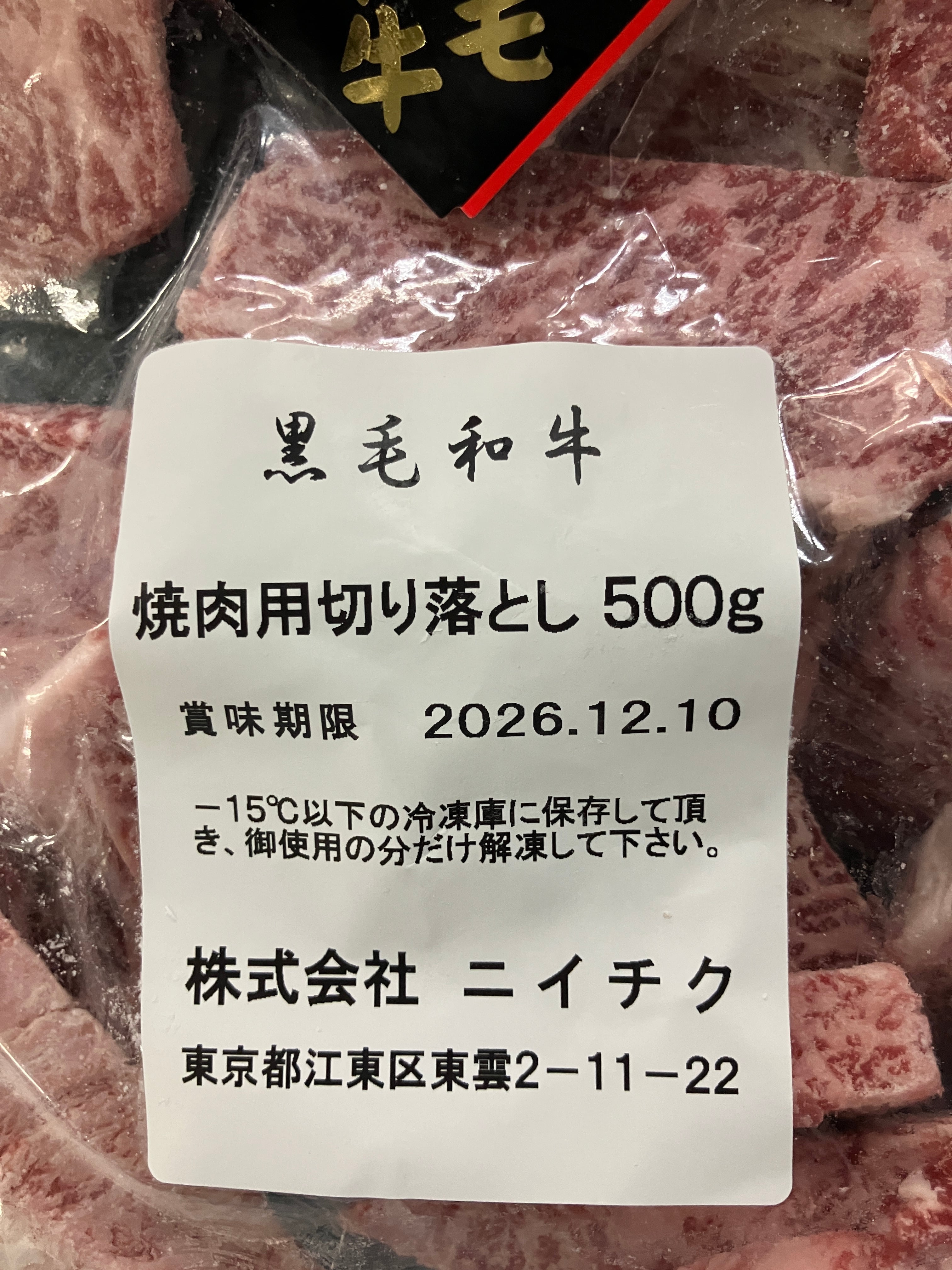 商品名 :黒毛和牛焼肉用切り落し500g〈冷凍〉