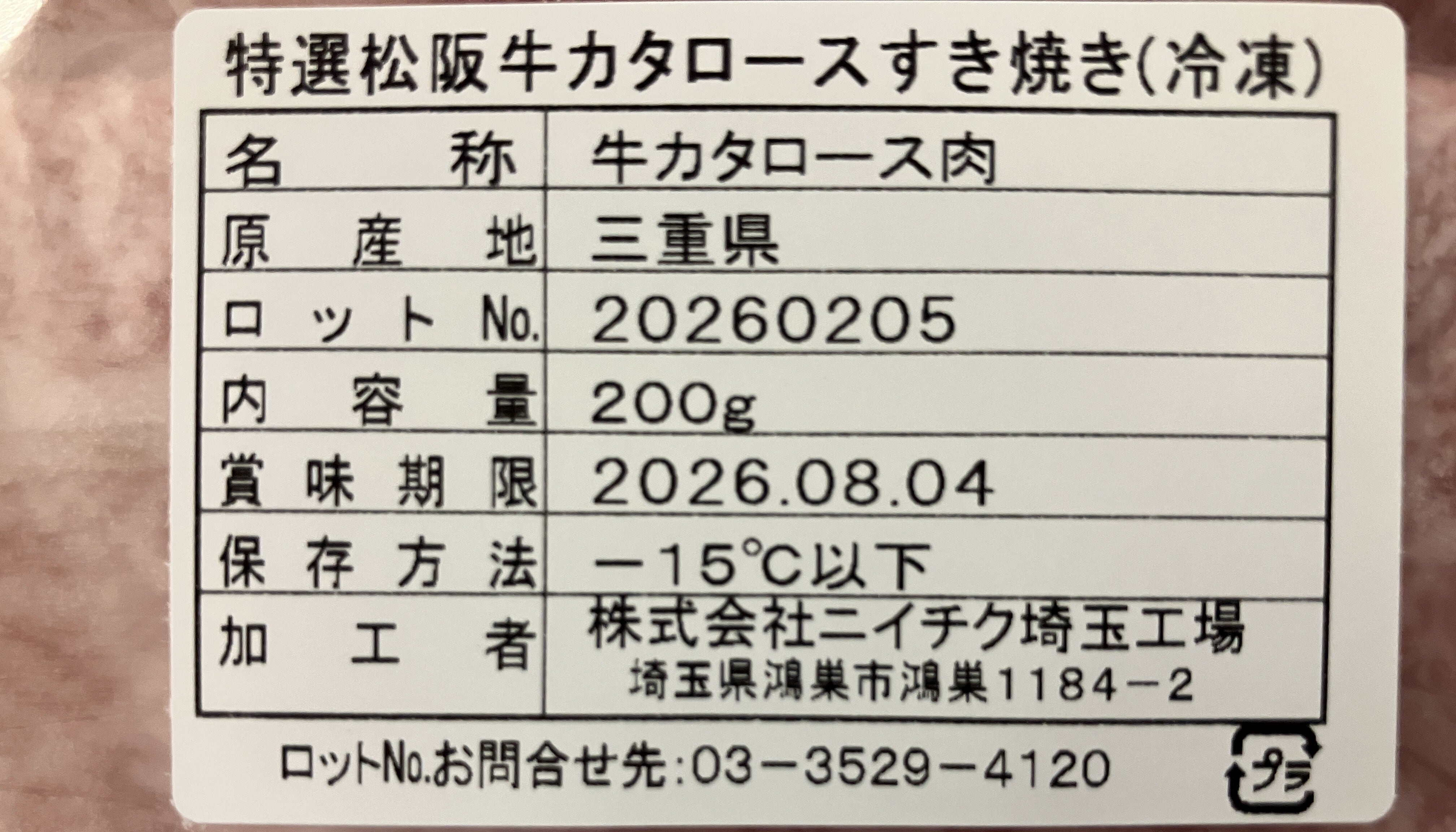 松阪牛カタロースすき焼き200g(冷凍)