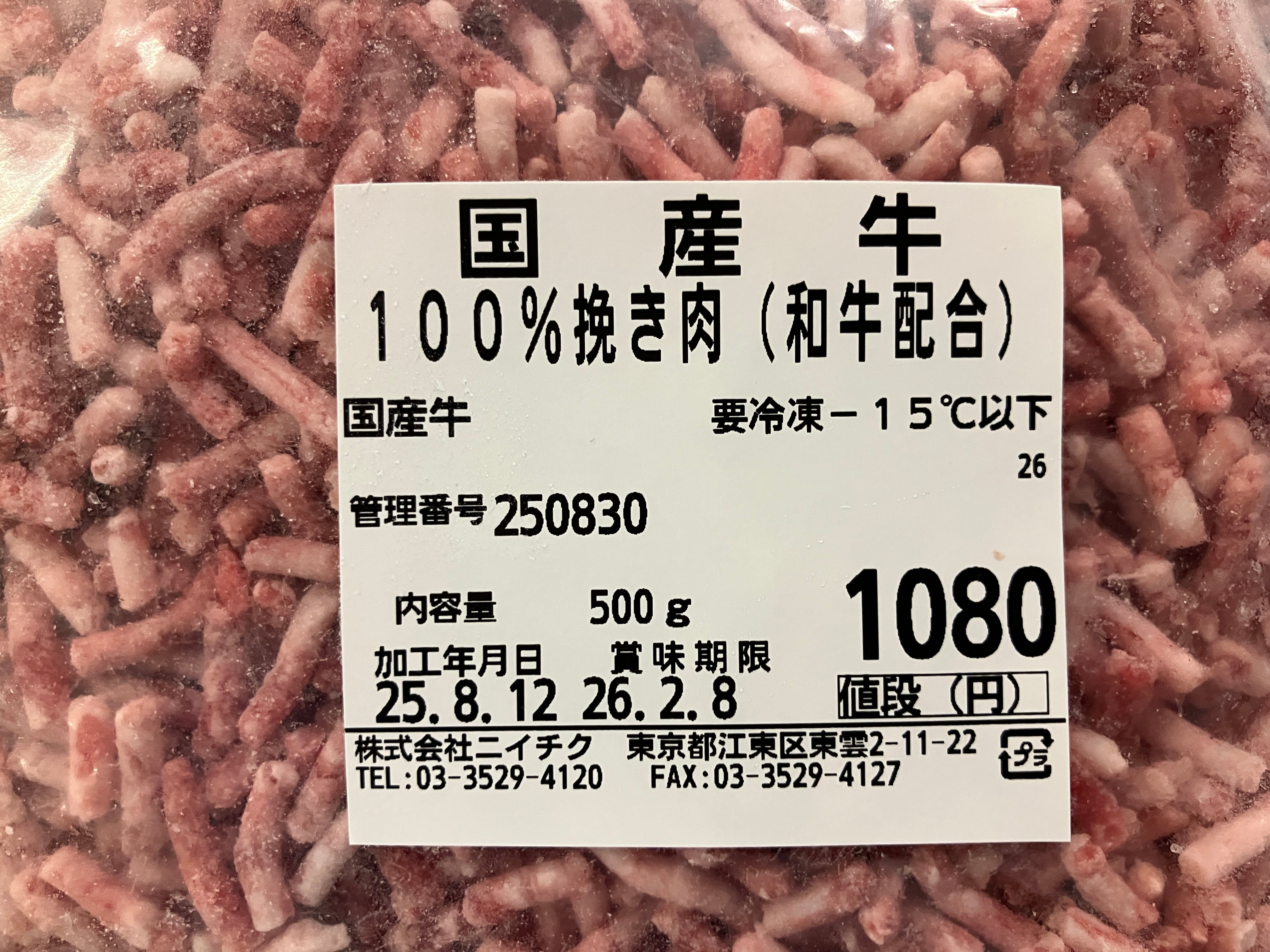 国産牛(和牛並びに交雑種)を原料としたひき肉になります。