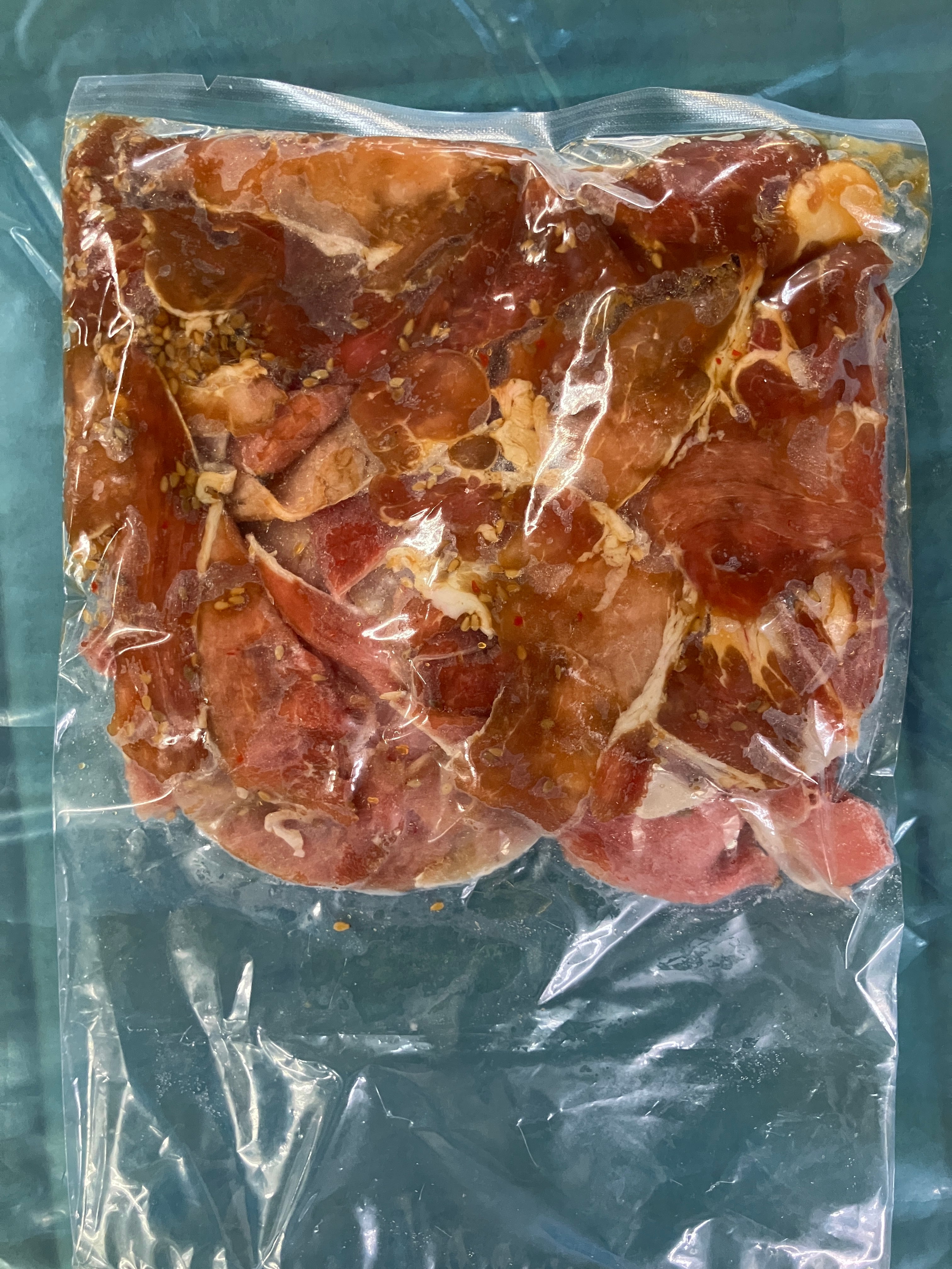 ブラジル産豚ロースに果汁とガーリックしょう油ベース仕立のお肉です。