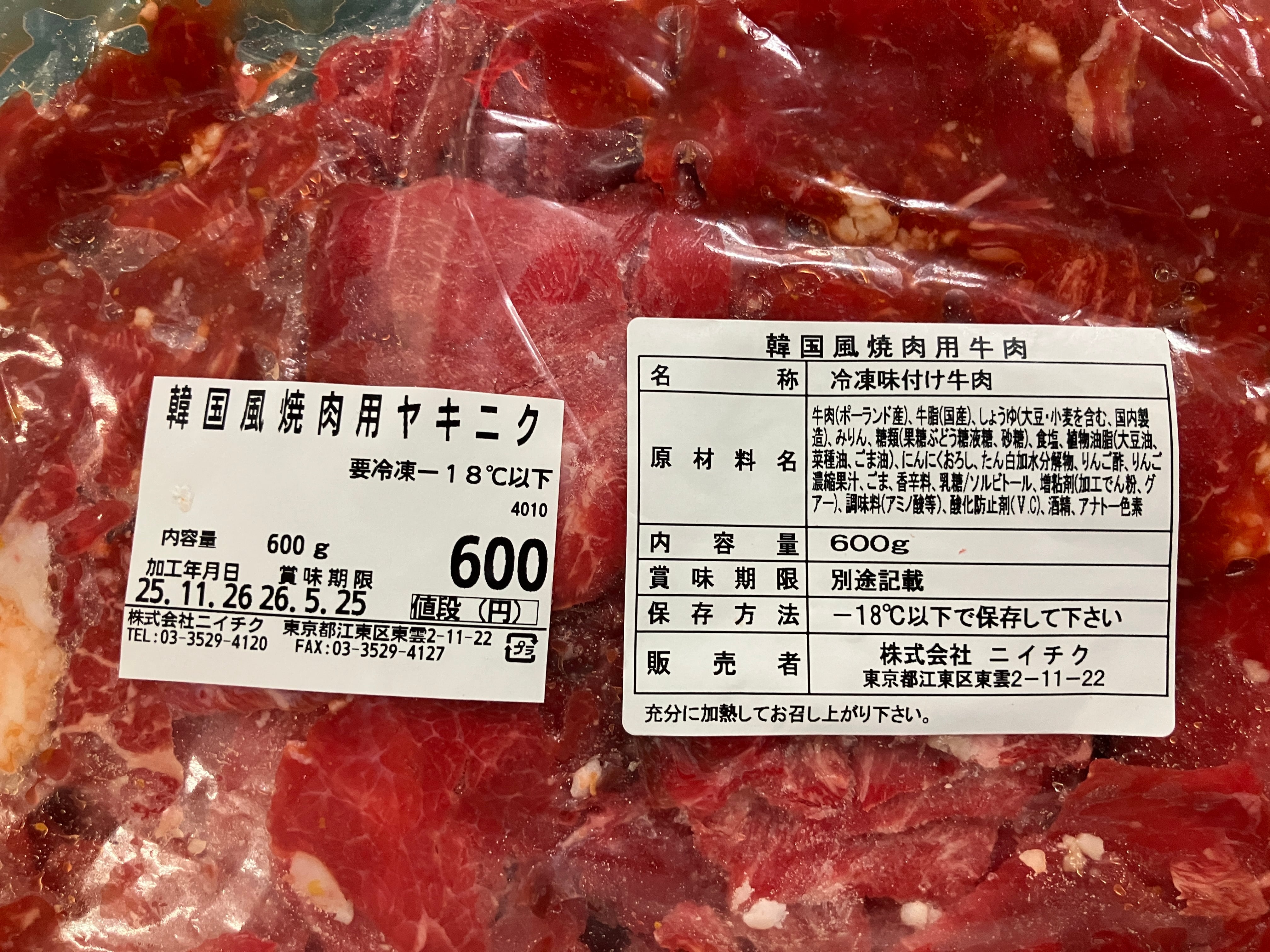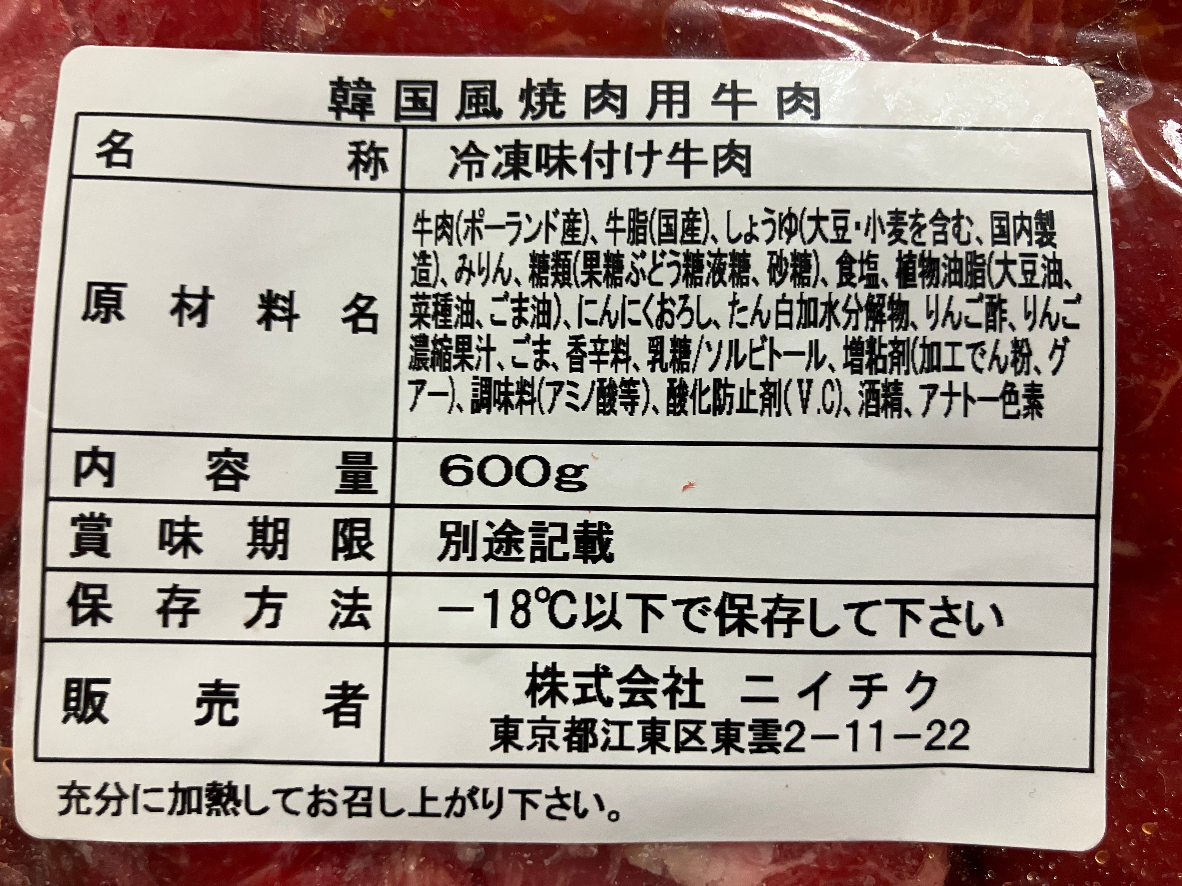 韓国風焼肉用牛肉600g(ポーランド産)《冷凍》