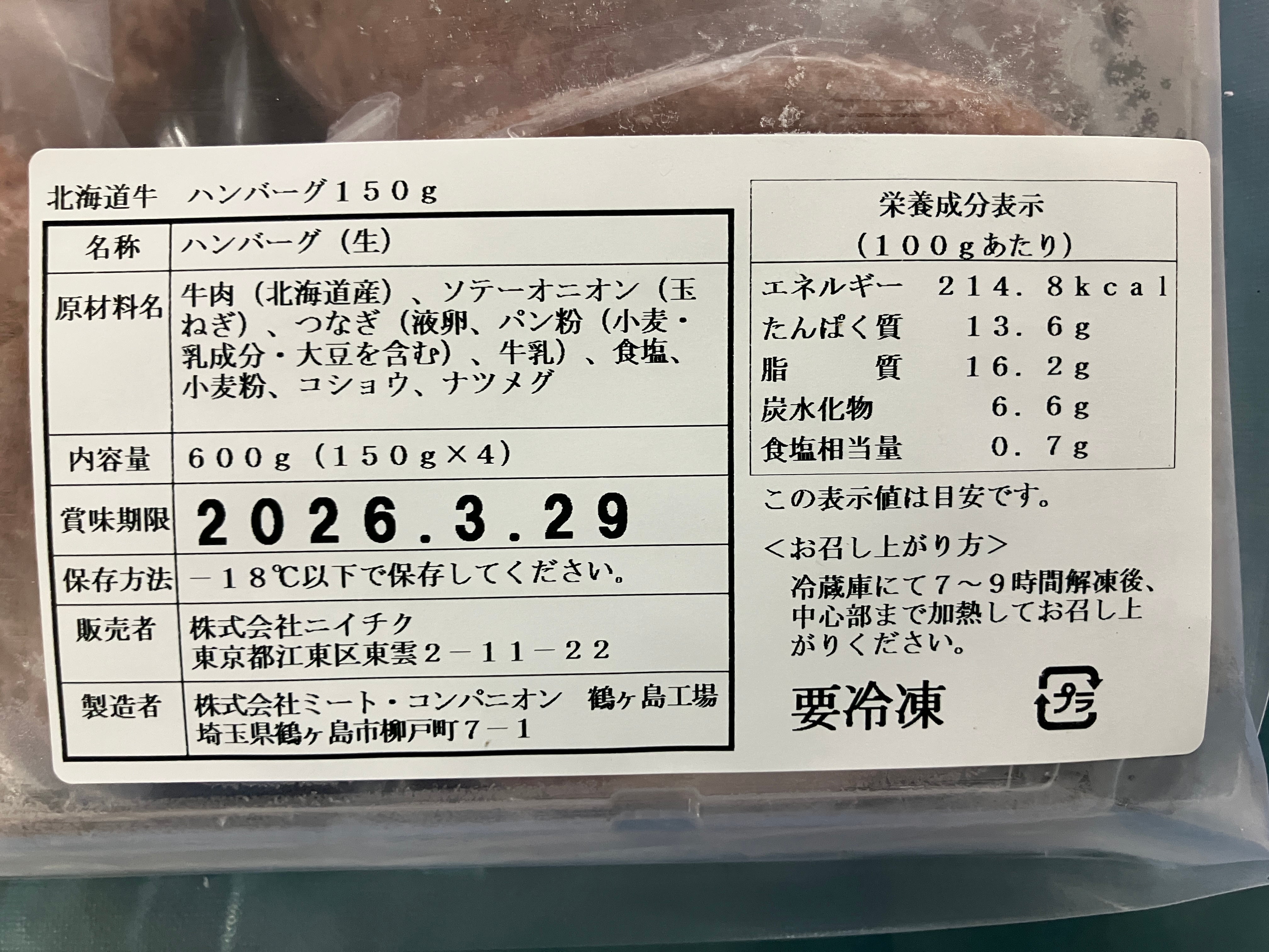 北海道牛 ハンバーグ150g×4〈冷凍〉
