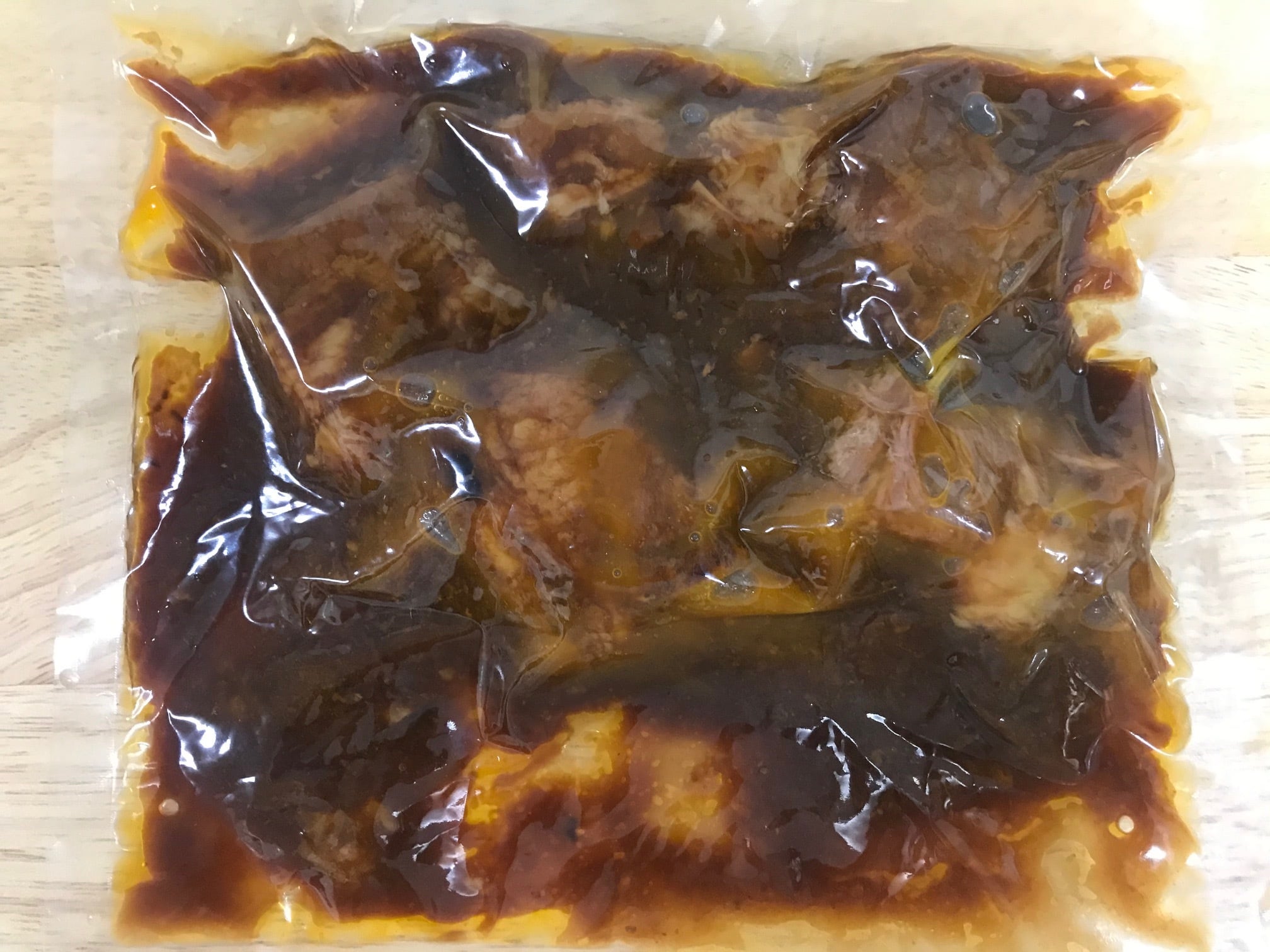 大きめカットしたお肉を一晩、海貝エキスで漬けて柔らかく、