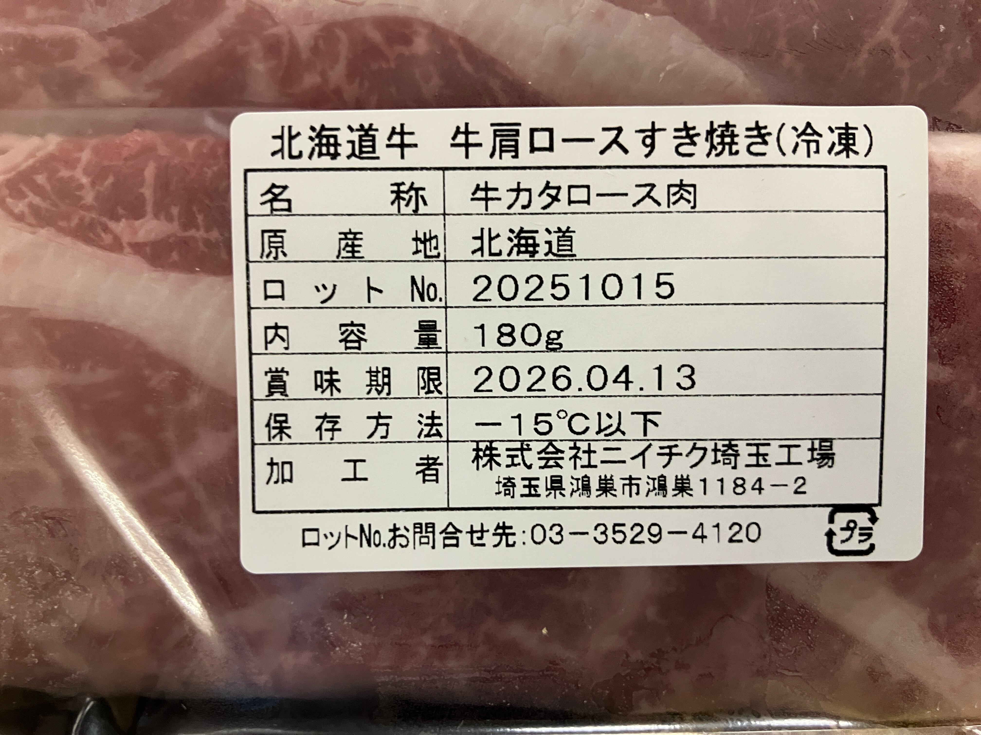 北海道牛 牛肩ロースすきやき180g〈冷凍〉