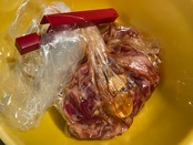 お肉1本ずつになじませてビニール袋に入れます