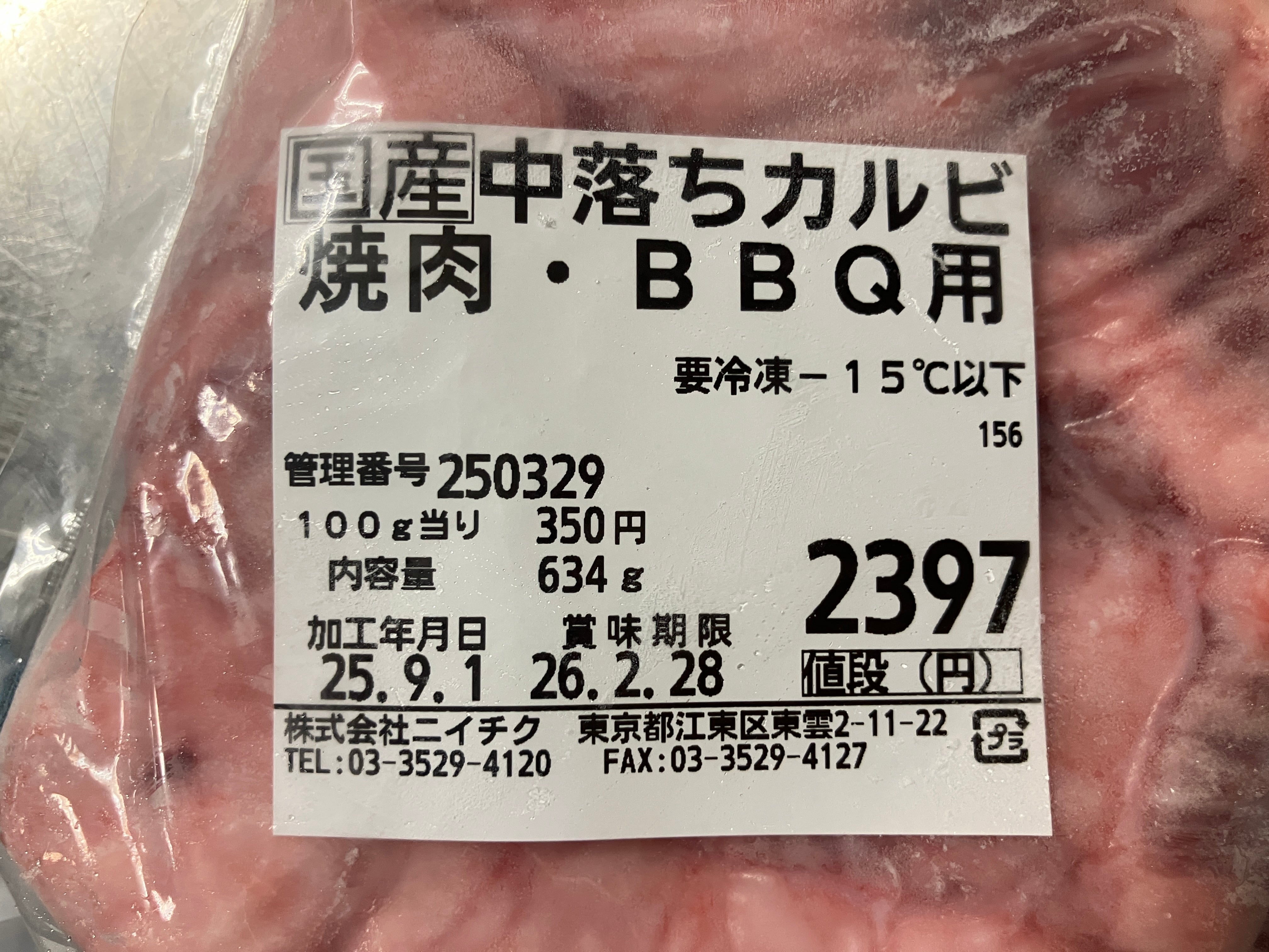 中落カルビを冷蔵庫で8時間程度解凍し
