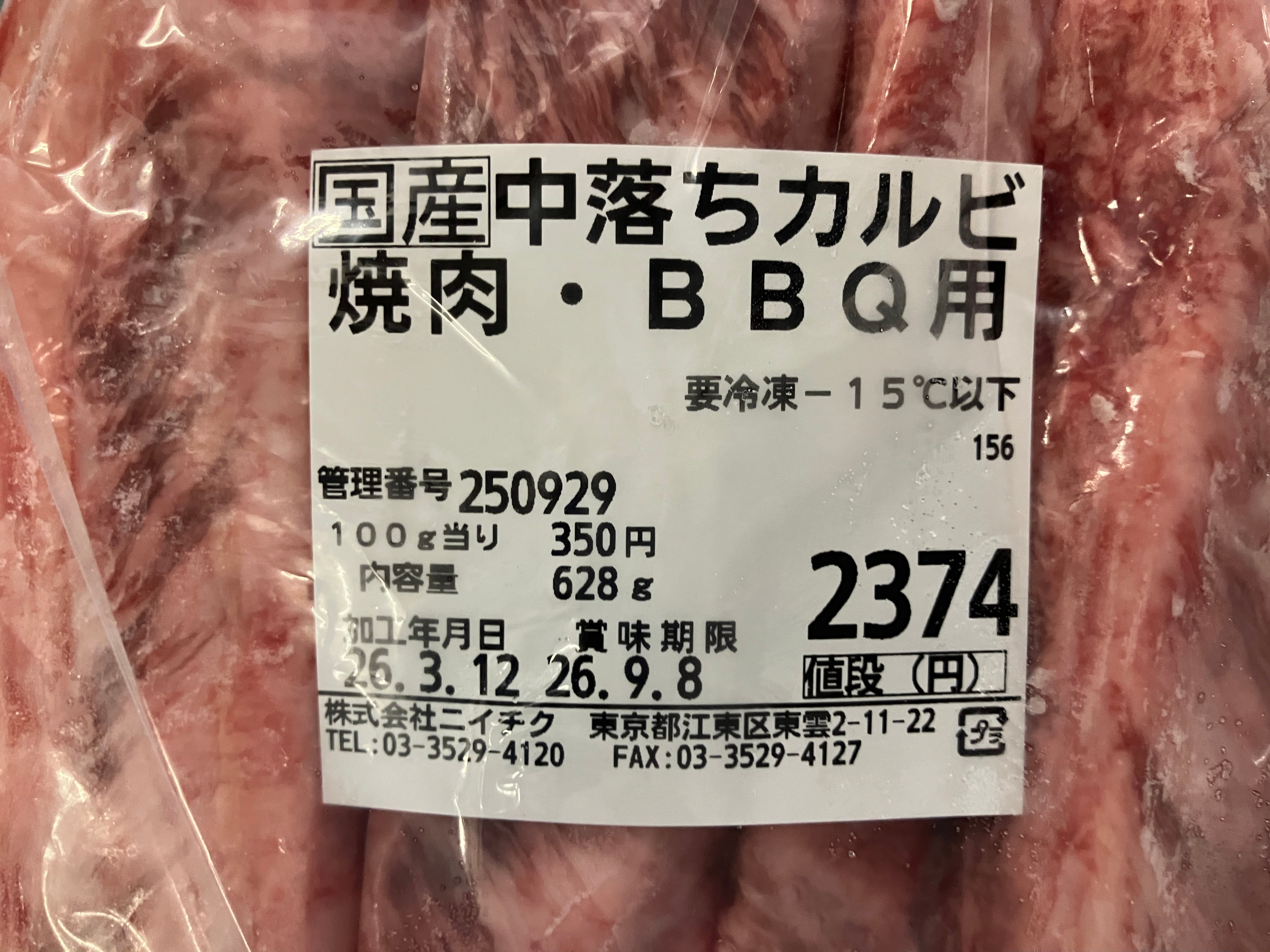 中落ちカルビは焼肉・BBQに大変人気なので